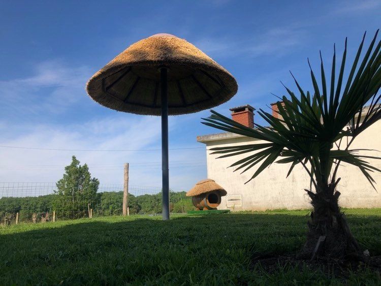 Réalisable sur mesure, ce parasol en toit de chaume vous protégera du soleil si bien, que vous pourrez y rester des heures.