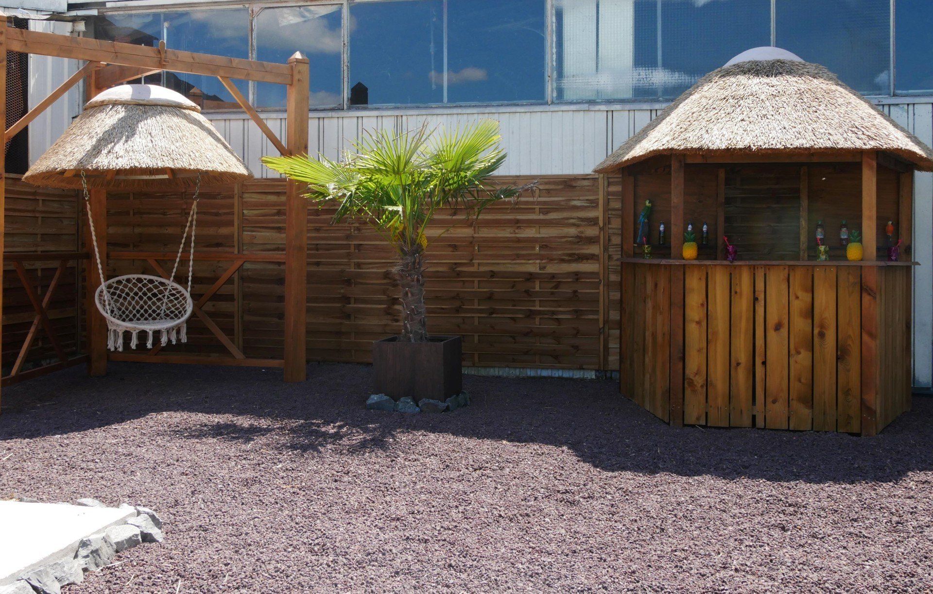 Quoi de mieux que de s'accouder à sa paillote bar près d'un bassin comme ici, ou près de votre barbecue, de votre piscine, à vous de choisir !